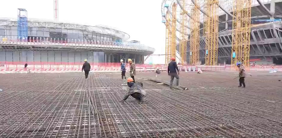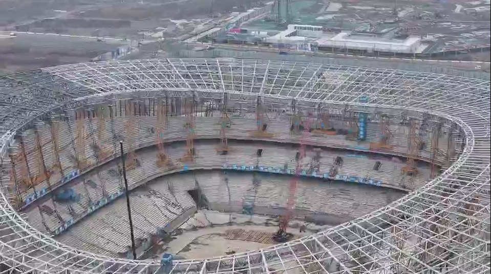 作为杭州城市新中心中轴线上的重大标志性工程,这里的足球场标段钢结构屋盖已顺利完成,工人们正紧锣密鼓地开展环向索、径向索索夹施工作业,这一工序的推进,将为后续膜结构施工打下坚实基础。