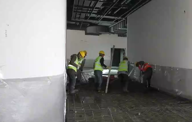 中建三局装饰工程现场负责人龙家鹏介绍,钝化混凝土施工周期长且需持续养护,“春节期间都是正常上班的,每天工作时长大概是8-9个小时,确保工序衔接不脱节。”