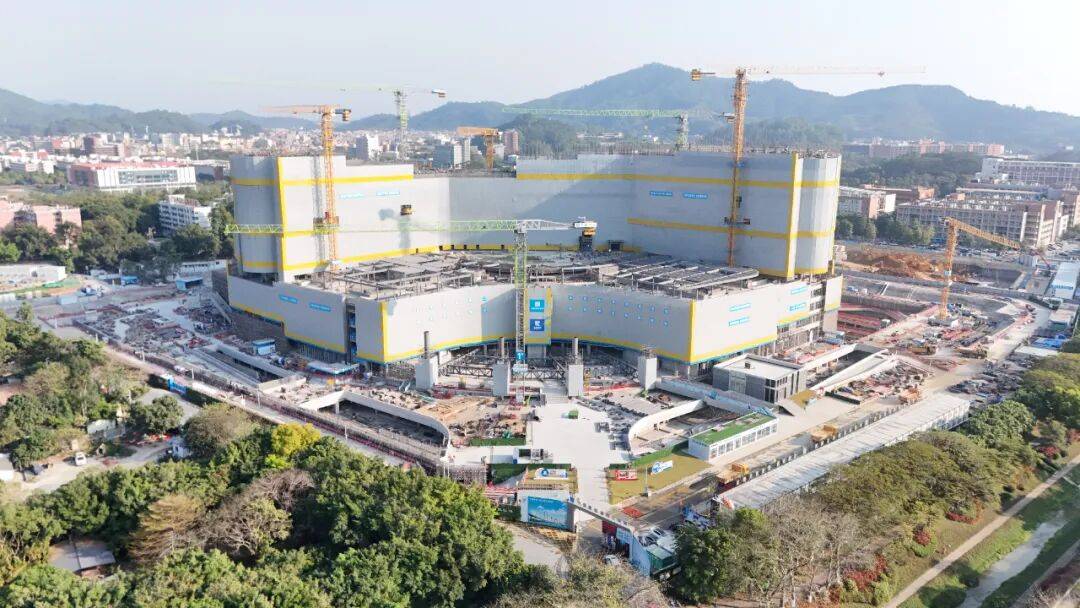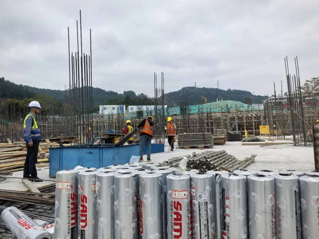 在中山大学肿瘤医学科学中心(天河院区)、中山大学附属第六医院(珠吉院区)项目现场,主体结构已于节前封顶,春节期间近百名工人正进行样板间施工、机电管线安装,为室内装饰装修做足准备;