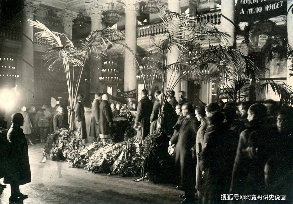 “尽管已是深夜,心绪激荡、满怀悲痛的民众仍如潮水般涌向这位伟人的灵柩——他是劳动者最伟大的朋友。我被领进圆柱大厅旁的美术室,那里正聚集着政府成员与列宁葬礼筹备委员会的诸位。
