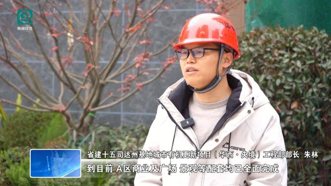 省建十五司达州基地城市有机更新项目(华西·央境)工程部部长 朱林:到目前,A区商业及广场、景观等配套均已全面完成;一批次1、2、6号楼已完工并实现提前两个月交房交证;二批次3、4、5号楼已封顶,室内外装饰装修及景观完成85%。B区商业外装及景观已呈现,小区景观呈现30%;住宅10、11号楼主体结构已封顶,1号楼已施工至20层,2、3、9号楼已完成地下室施工。
