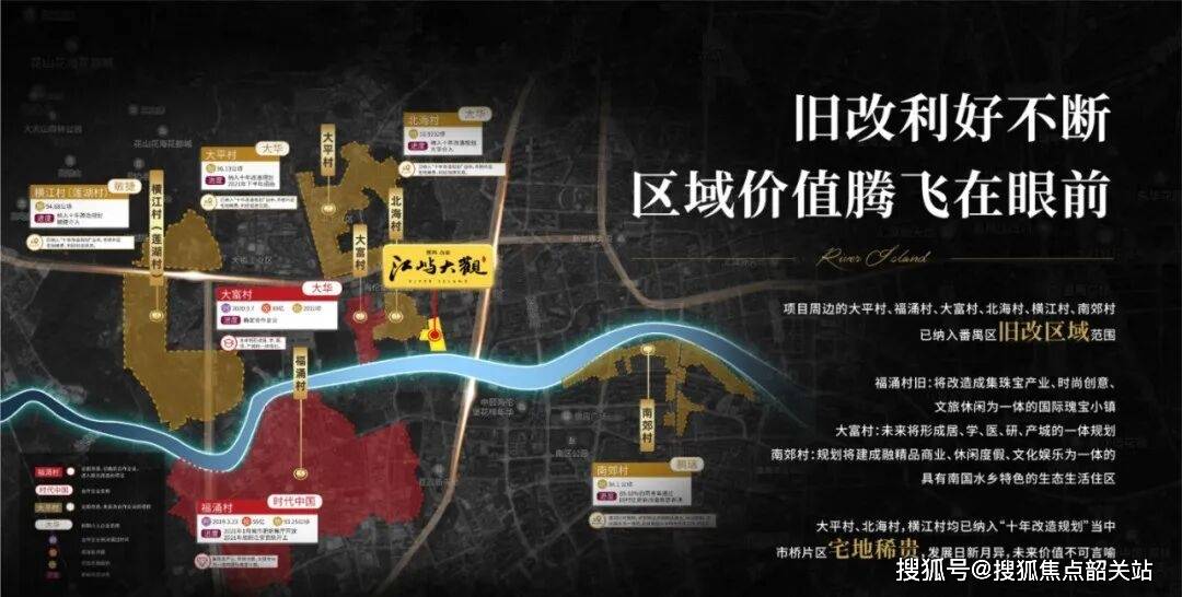 国科众安·江屿大观最核心的优势,在于其一线临江的地理位置。项目坐落于番禺市桥水道“一河两岸”城市更新主轴上,该片区已启动915万平方米的世界级改造工程,规划对标珠江两岸景观带,旨在打造大湾区下一个“城市客厅”与“城市名片”。